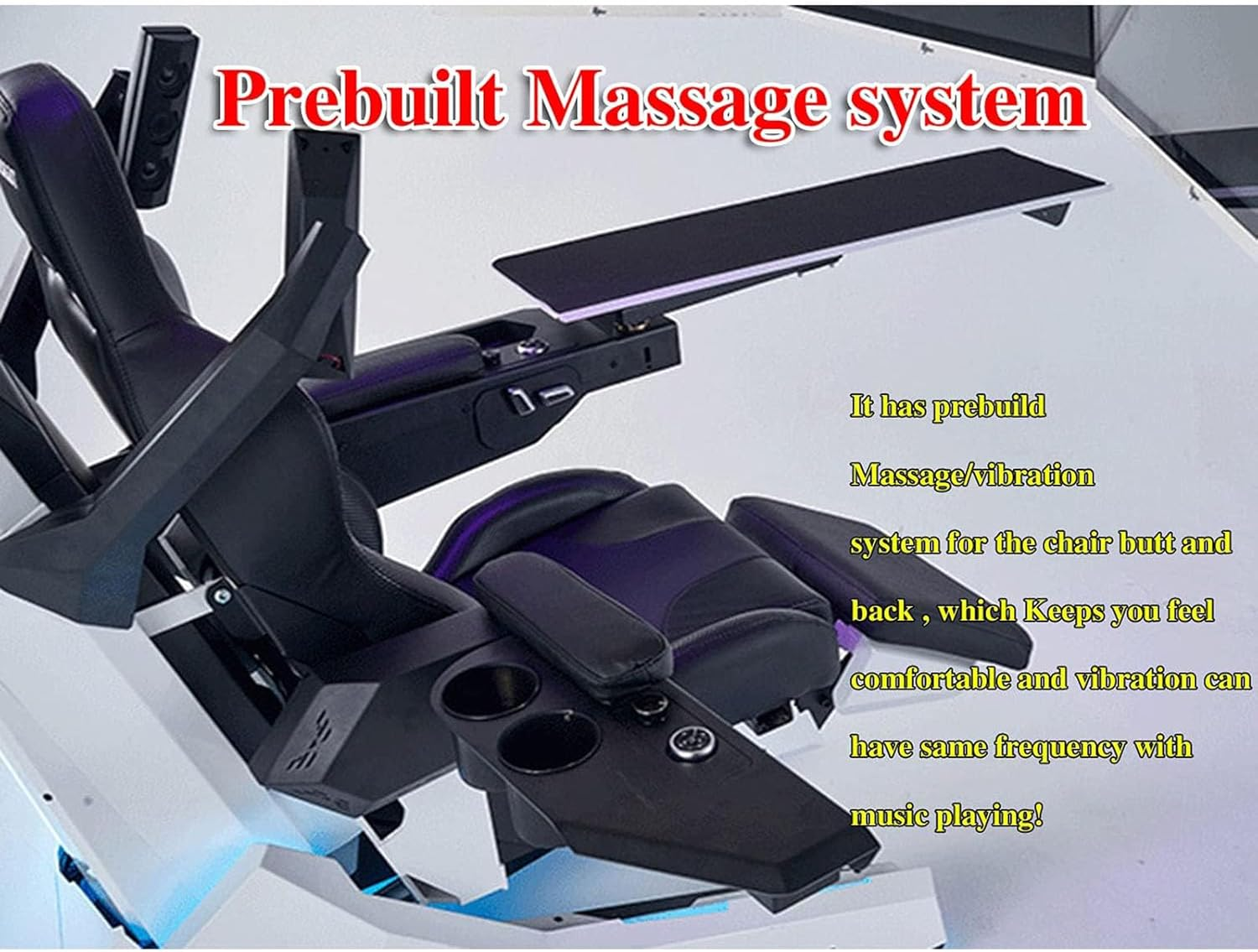 ♞ Hệ thống massage được thiết kế sẵn, có hệ thống massage/rung được thiết kế sẵn cho phần mông và lưng ghế, giúp bạn cảm thấy thoải mái và độ rung có thể có cùng tần số với âm nhạc đang phát!