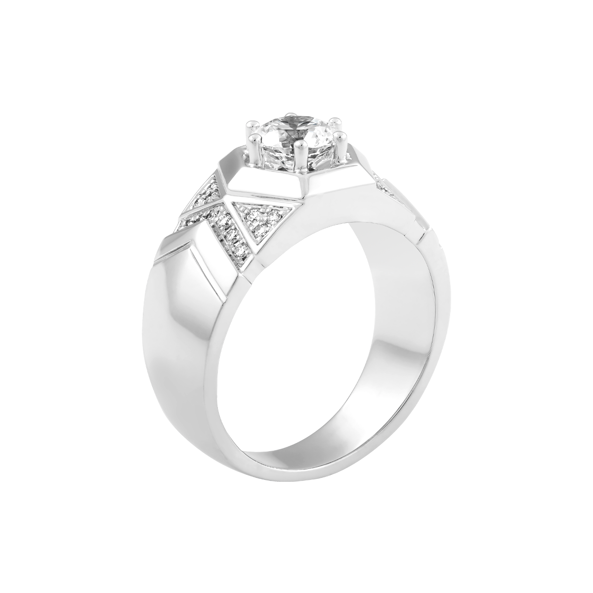 Nhẫn nam Aventador D - Phá cách tạo nên sự khác biệt. Với thiết kế vô cùng độc đáo bởi mặt nhẫn hình lục giác là biểu tượng đại diện cho sự cứng rắn và sức mạnh mà sản phẩm đem đến cho người sở hữu. Đai nhẫn gắn kim cương tấm kết hợp với những đường biên vàng cứng cáp nổi bật hướng về mặt nhẫn như đang tiếp thêm năng lượng tạo nên một thiết kế vô cùng sáng tạo, tuy phá cách nhưng rất hài hòa và sự khác biệt ấy đã tạo nên đẳng cấp riêng.