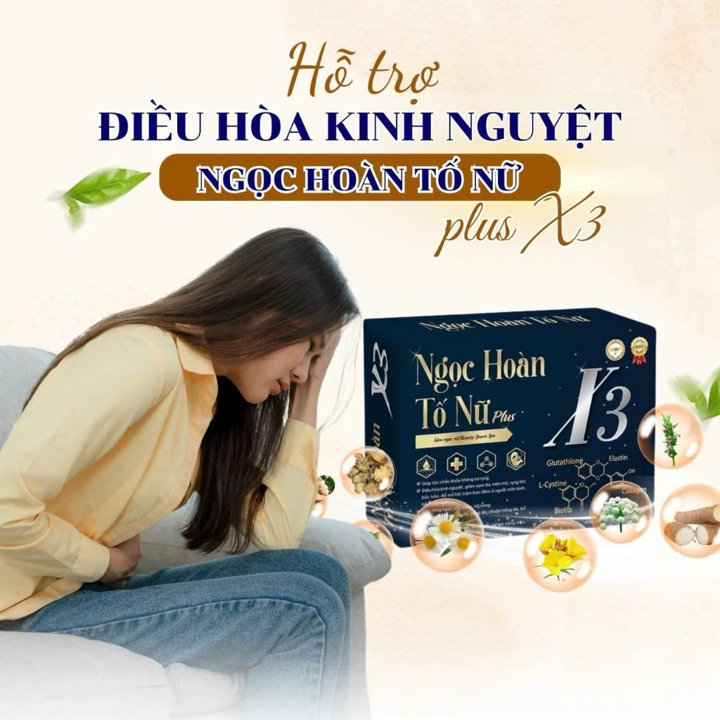 Sâm Tố Nữ NGỌC HOÀN Plus X3 Tái hồi xuân Phiên bản Cao Cấp hổ trợ nội tiết tố nữ (1 hộp 2 lọ tổng 60 viên) NHÀ MÁY SẢN XUẤT THỰC PHẨM CHỨC NĂNG – CÔNG TY CỔ PHẦN DƯỢC PHẨM MEDIUSA Địa chỉ: Lô CN A5, khu công nghiệp Phú Nghĩa, xã Phú Nghĩa, huyện Chương Mỹ, Hà Nội, Việt Nam Tên sản phẩm: Thực phẩm bảo vệ sức khỏe Sâm Tố Nữ NGỌC HOÀN Plus X3 Thành phần: Glutathione............................................ 200mg Cao Ích mẫu 100mg Cao Sâm tố nữ (Puerari mirifica extract) 50mg Cao Đương quy (Angelica spp) 50mg Cao Xuyên khung ( Ligusticum wallichii) 50mg Cao Bạch thược (Paeonia lactiflora) 50mg Collagen 50mg Tinh dầu hoa anh thảo 25mg L-Cystine 25mg Cao Hạt bí ngô..................................... 25mg Chiết xuất Củ mài (Pregnenonlone acetate) 20mg Cao Cúc la mã………….......................….…..10mg Sữa ong chúa 10mg Vitamin E (DL-alpha tocopheryl acetate) 10mg Chiết xuất Nhau thai cừu ................................. 5mg Phụ liệu: talc, tinh bột, calci carbonat, magie stearate, povidone K30 vừa đủ 1 viên Chỉ tiêu chất lượng chủ yếu tạo nên công dụng của sản phẩm: STT Tên chỉ tiêu Đơn vị tính Mức công bố 1 Glutathione mg/viên ≥ 180 2 Collagen mg/viên ≥ 40 3 Vitamin E mg/viên 10 ± 20% Sâm tố nữ Định tính Dương tính Thời hạn sử dụng sản phẩm: 3 năm kể từ ngày sản xuất.Ngày sản xuất và hạn sử dụng được in trên bao bì của sản phẩm Cách uống: sáng 1 viên - tối 1 viên uống trước và sau ăn 30 phút ?hổ trợ tăng cường nội tiết tố ,sáng da,đẹp da ?tăng vòng 1,nở nang ?cải thiện khô hạn ?cải thiện nám,tàn nhang,tóc rụng,tóc khô,bóc hoả,tiền mảng kinh và mảng kinh,giảm tress ,căng thẳng ?điều hoà kinh nguyệt ?Dùng được cho người từ 18 tuổi trở lên ?sản phẩm này không phải là thuốc không có tác dụng thay thế thuốc chữa bệnh