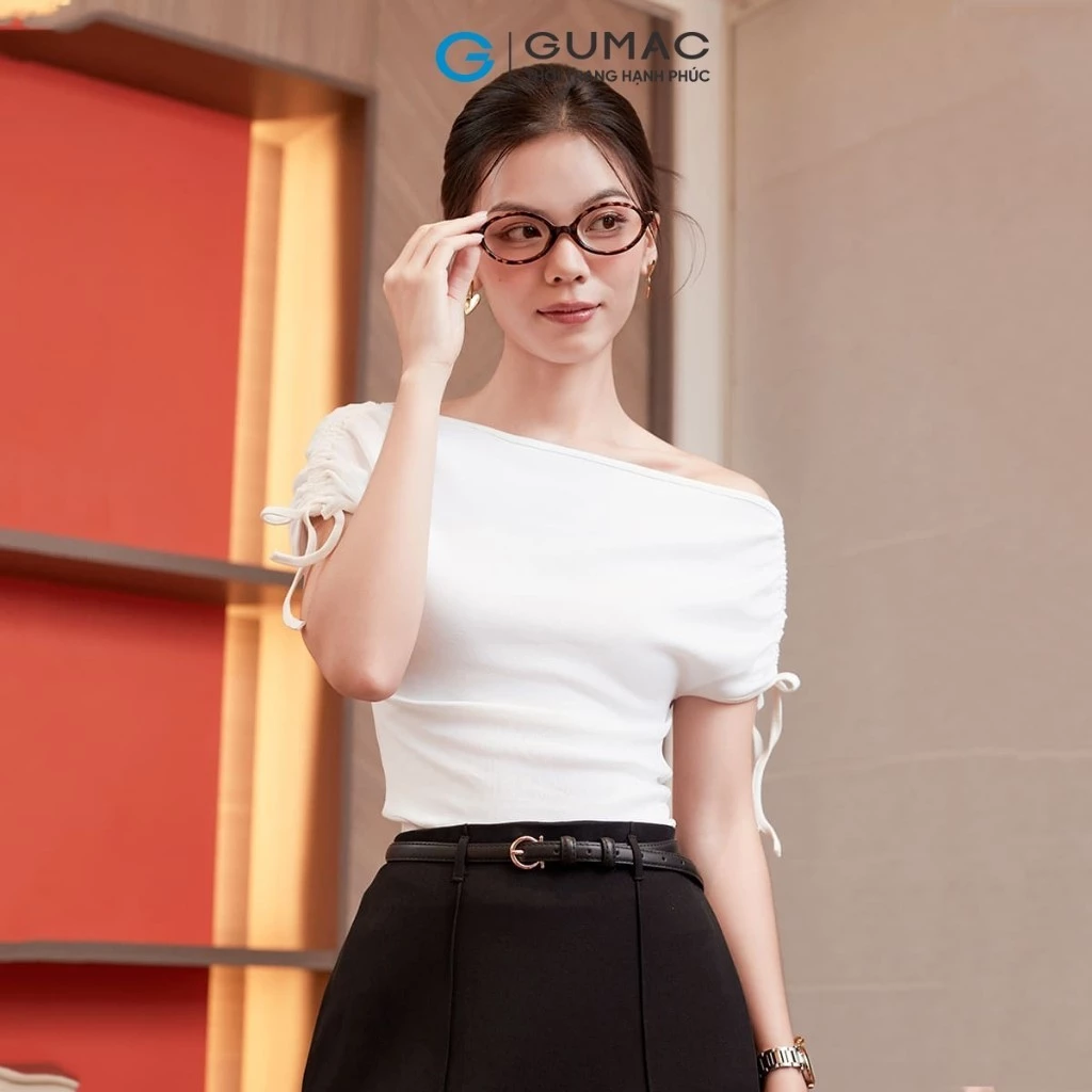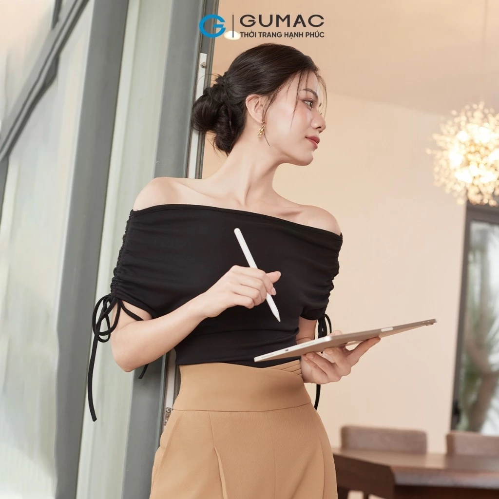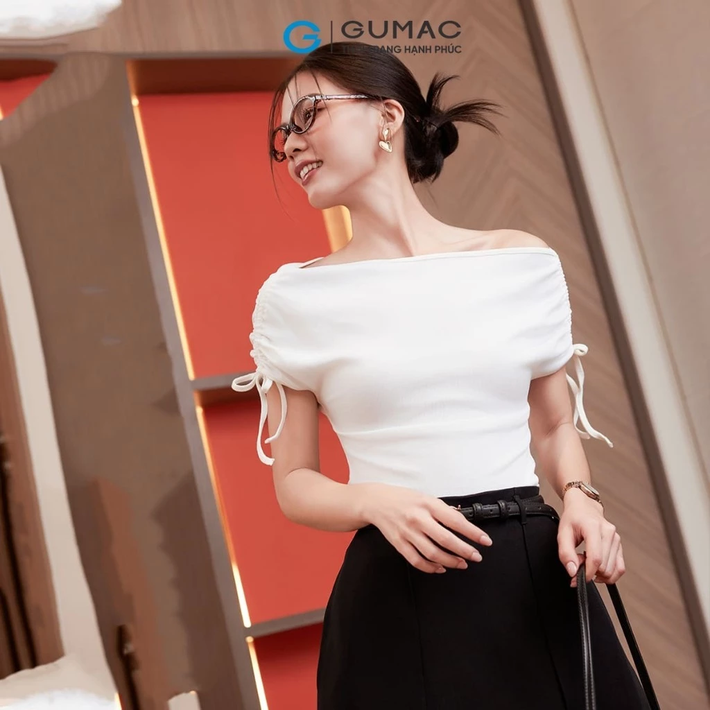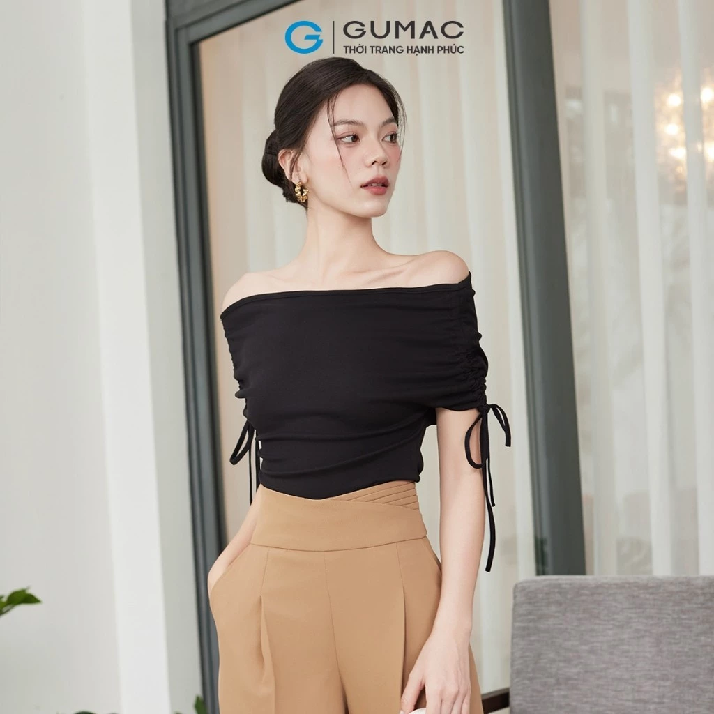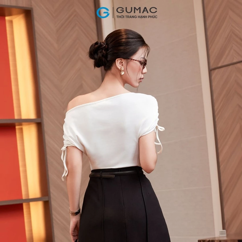Áo thun kiểu Phom Slim ôm sát cơ thể. Cổ kiểu dạng ngang có thể mặc bẹt vai hoặc có thể kéo căng chỉnh theo ý thích người mặc - đều tạo ra nhiều kiểu khác nhau. Phần tay áo có thun rút dây tự do không may chết - căng chỉnh theo ý thích người sử dụng. Lai ngang.
