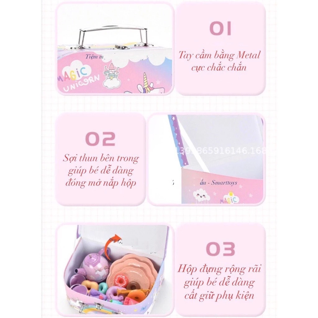 2. Đồ Chơi Vali Trà Bánh PONY VINATOYS, Có Ấm Chén Tháp Bánh Bằng Nhôm Cao Cấp, 48 Chi Tiết An Toàn Cho Bé