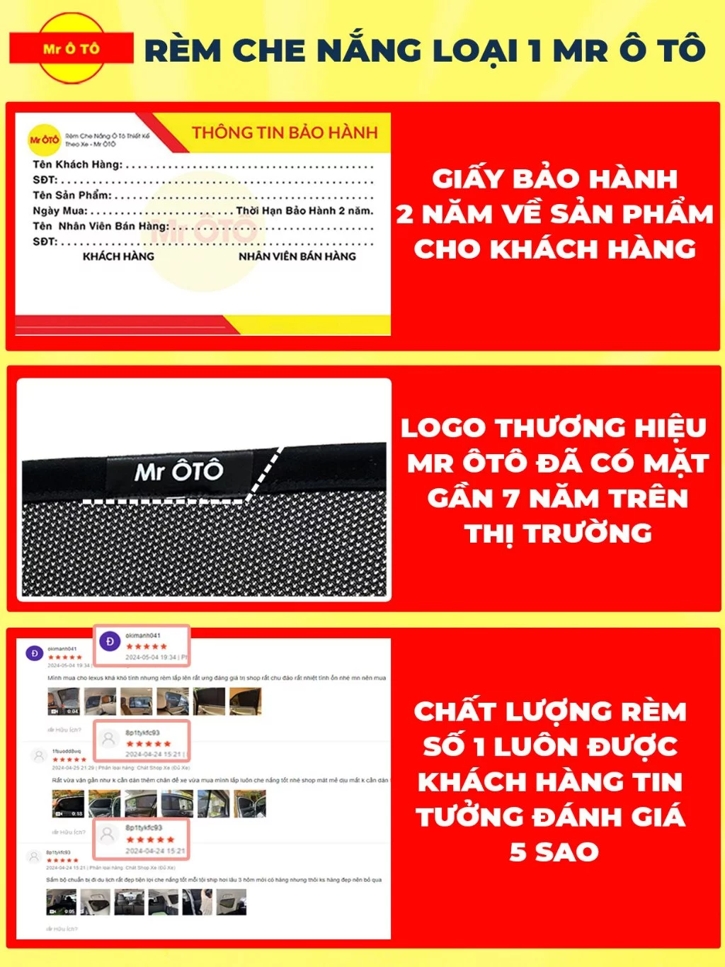 - Sản phẩm rèm che nắng ô tô Mr Ô TÔ được bảo hành 24 tháng (có phiếu bảo hành chính hãng đi kèm sản phẩm)