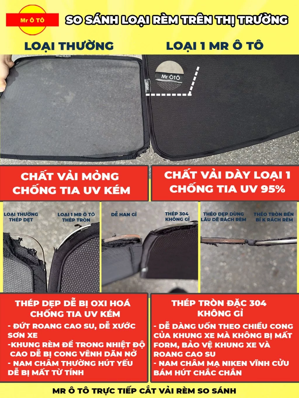 - Rèm cánh trước Mr Ô Tô thiết kế chuẩn, ko che tầm nhìn gương chiếu hậu, an toàn khi lái xe -> Hàng thường làm ẩu rèm trước khuất kính chiếu hậu, lái xe ko an toàn